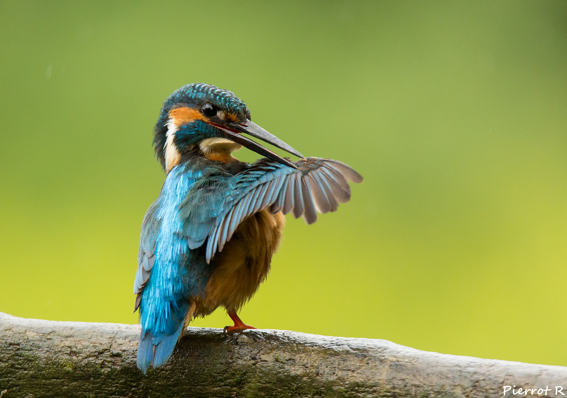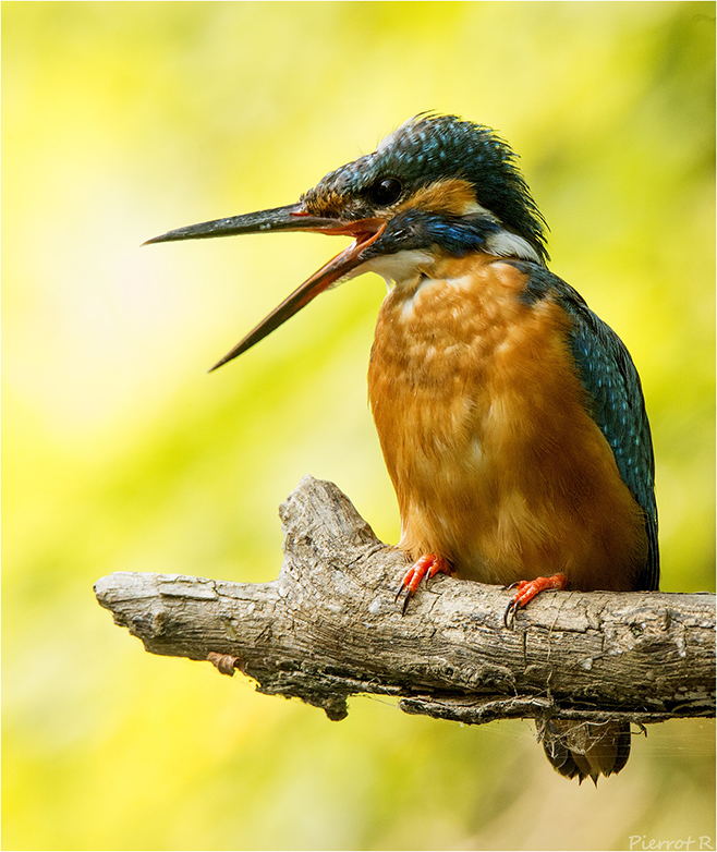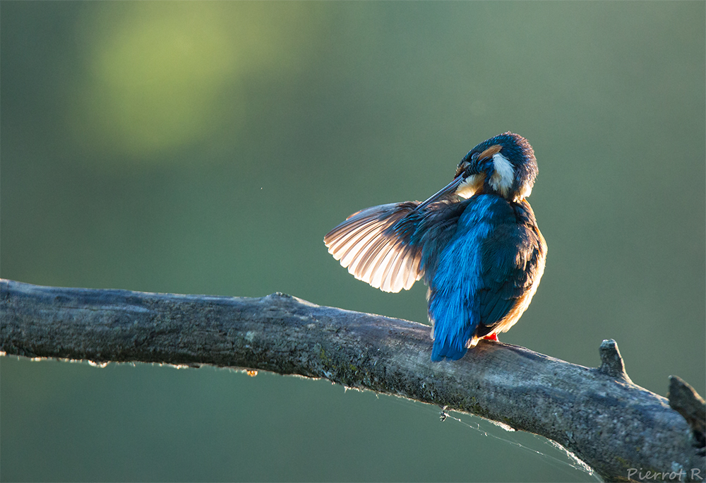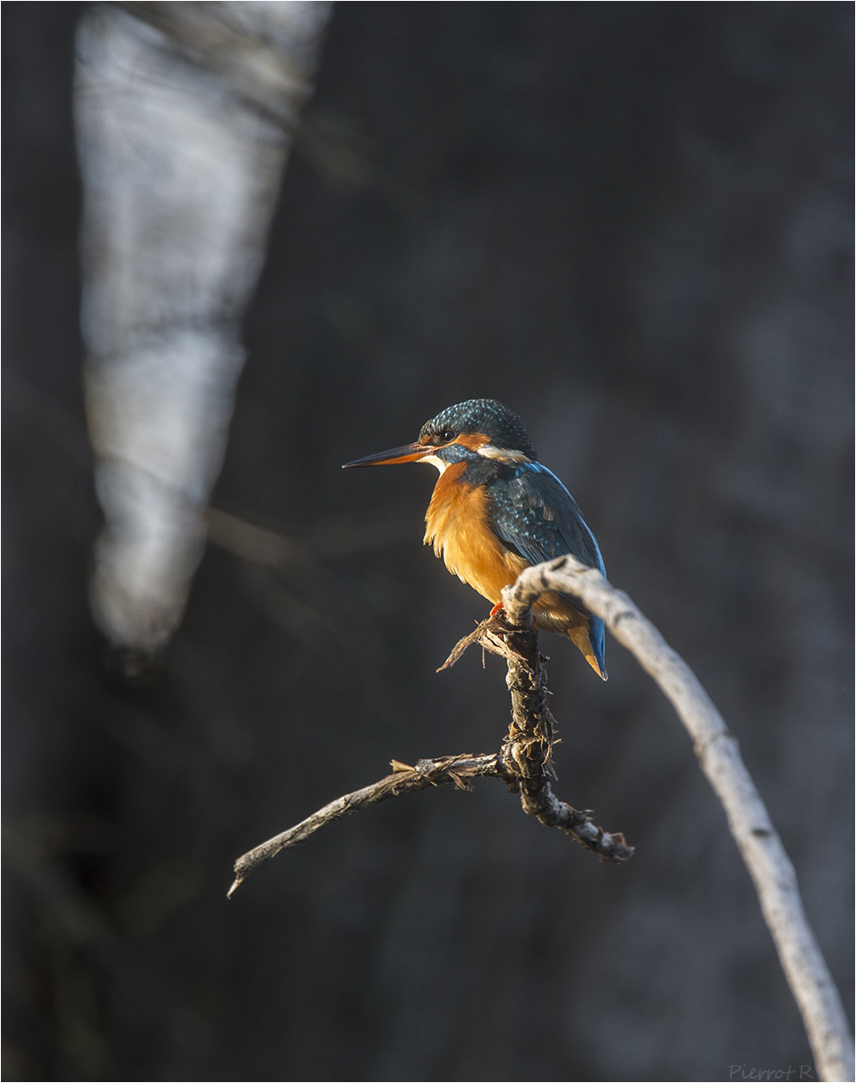 Un rare moment de soleil hivernal pour cette femelle martin pêcheur.