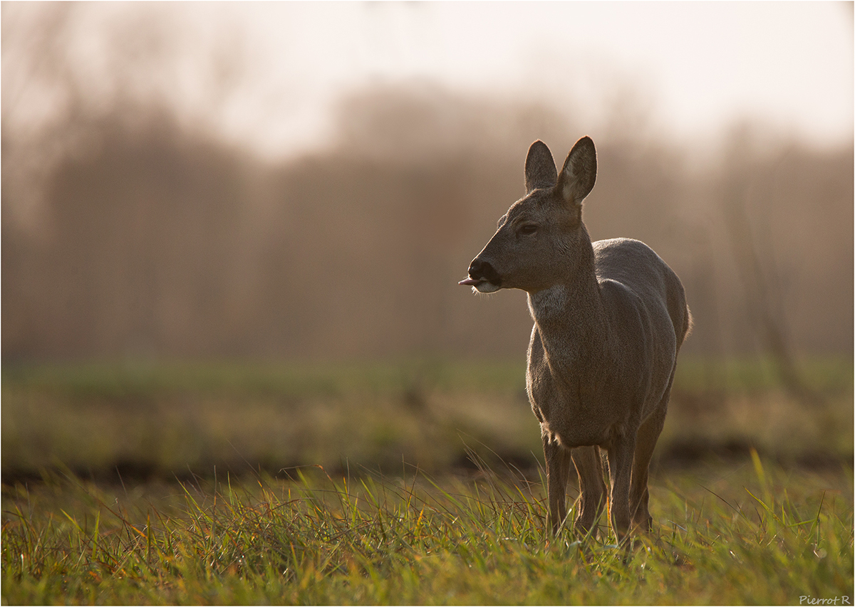 Un fort vent d'hiver a facilité mon approche pour observer cette grassouillete chevrette .