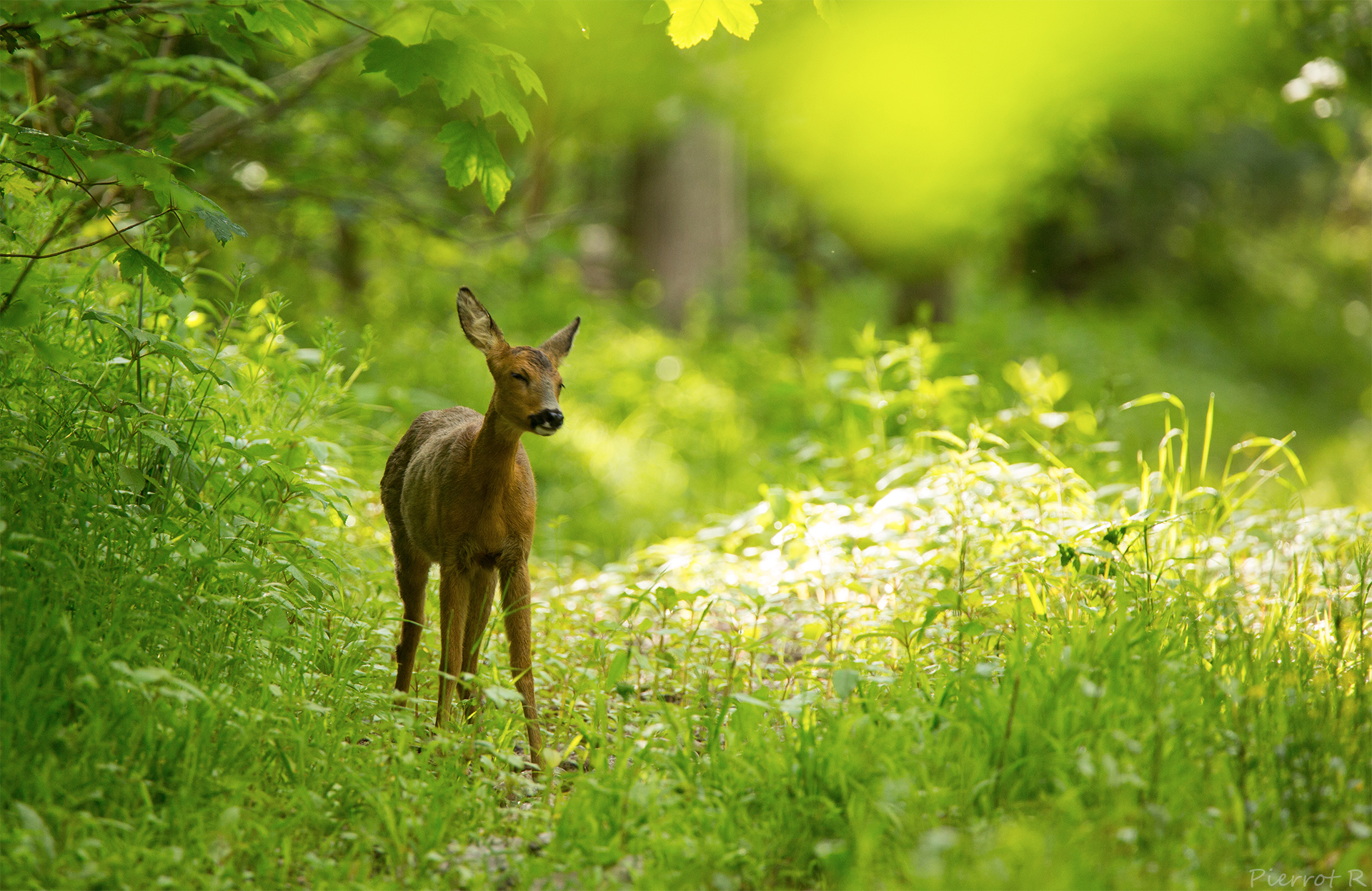Ce daim profondement endormi ne pas détécté et j'ai pu assister à son reveil 1 heure plus tard.
