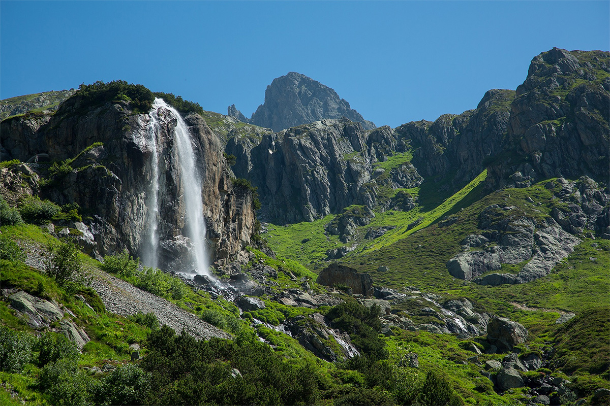 Cascade surplombant la route d'un des plus cols de Suisse.